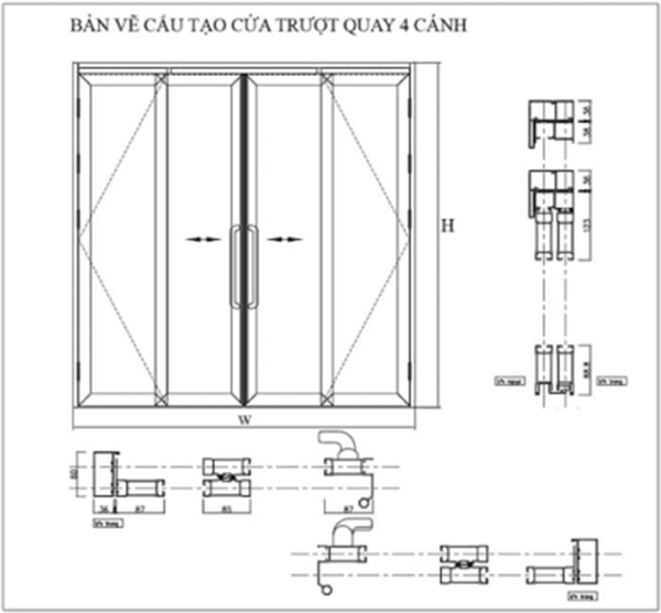 Thông Số Kỹ Thuật Cửa Trượt Quay Hệ Nẹp Rời 6.0